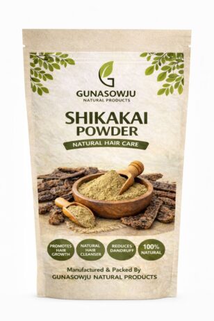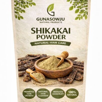 Our GUNASOWJU Natural Products Shikakai Powder is made from carefully dried and finely ground shikakai pods to provide a gentle and natural way to clean and nourish your hair.